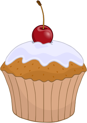A cartoon muffin with a cherry.