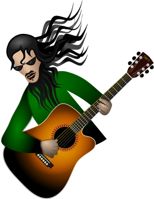 A cool guitarist playing an acoustic guitar. This work is not finished, still need to fix hands a bit more, but others can remix it. Drawn with Inkscape. Credit for the acoustic guitar go to Open clip art artist Narrowhouse, his wonderful work can be found at http://openclipart.org/detail/16707/acoustic-sunburst-by-narrowhouse