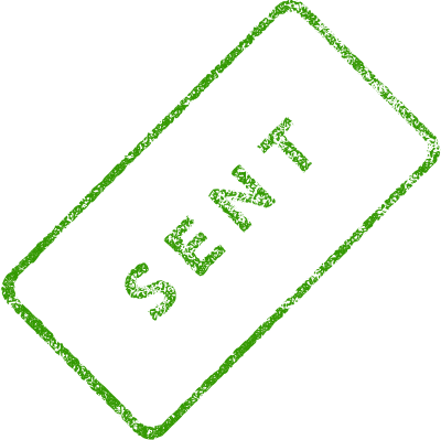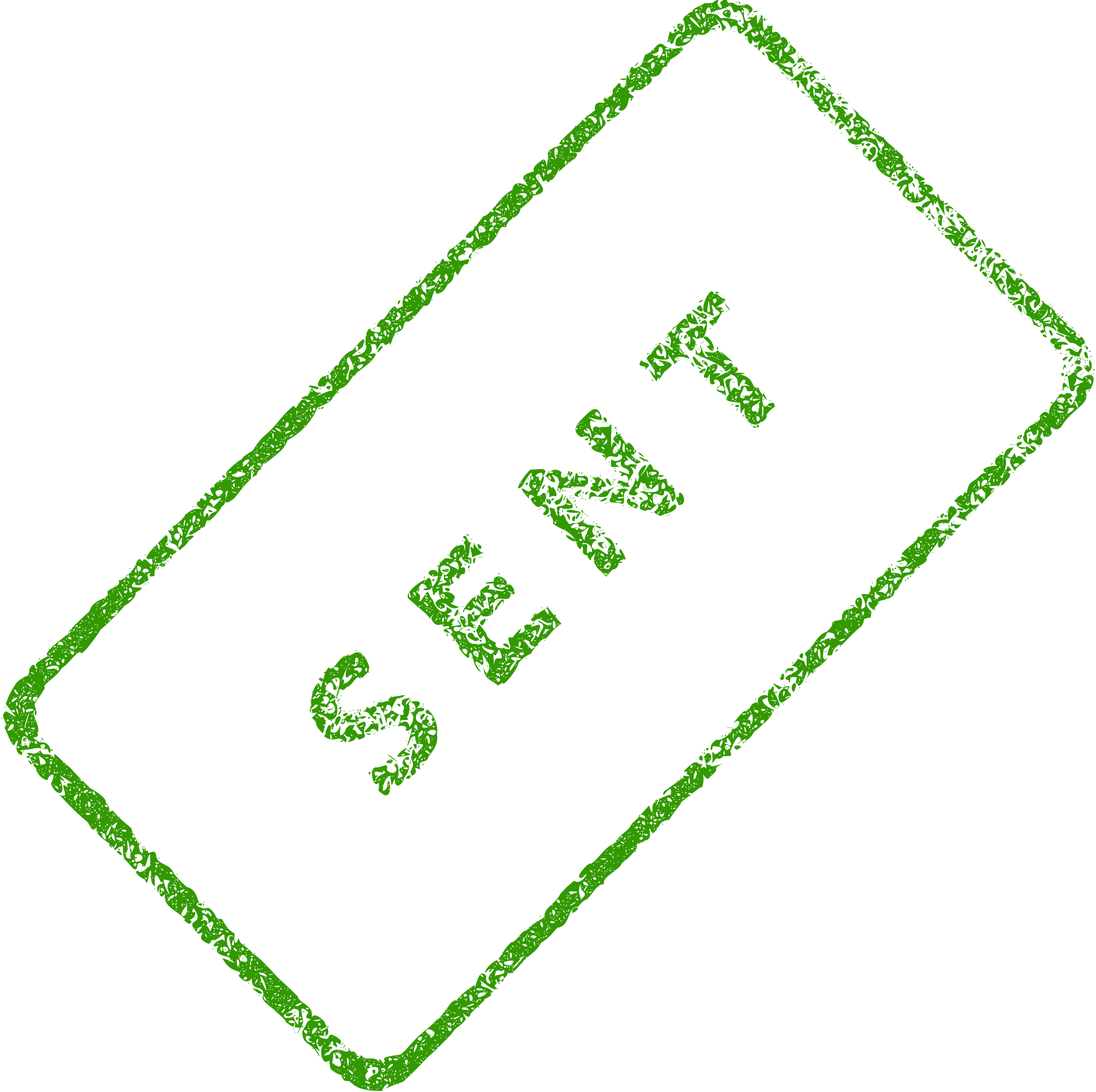 A slanted realistic patterned green business stamp, with the words, "Sent." Created with Inkscape.