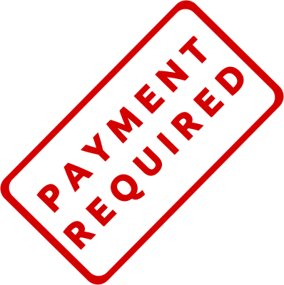 A slanted solid red business stamp, with the words, "Payment Required." Created with Inkscape.