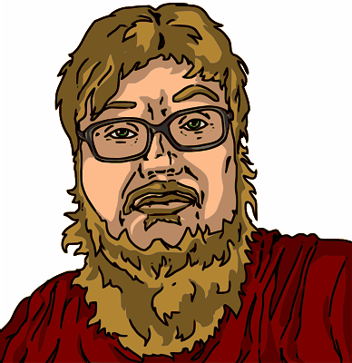 A bearded young man with glasses.