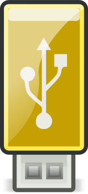 Yellow USB stick, stylized to meet the Tango open-icon design standrads