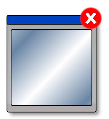 A generic window on the desktop, with blue title bar and red button to close