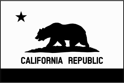 This image contains the Flag of the California. It was carefully designed to match the description of the flag as described in California Law 54-J-03. The bear was rendered directly using the official drawing found in the law. This also includes the grass plot. This is a monochrome and solid version with a thick border.