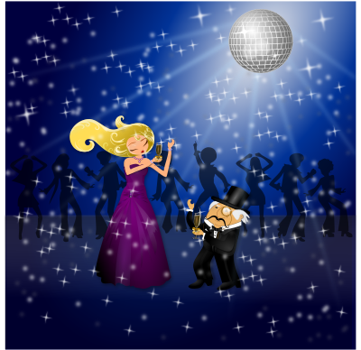 A couple dancing at a New Year's Party! NOTE: Use the Open Clip Art website PNG function or load into Inkscape to generate the image correctly.