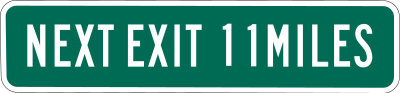 Used to warn a driver that the next exit will not be available for 11 miles