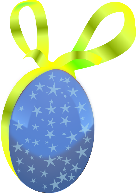 Un oeuf de Paques enrubanné et etoilé.