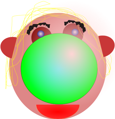 A clown with a green nose.