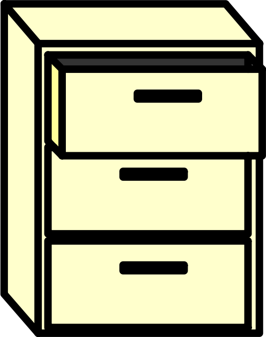 Filing cabinet with top draw open