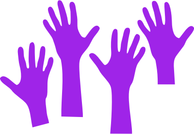 Four hands reaching upwards.