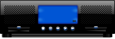 A modern stereo with lcd screen.
