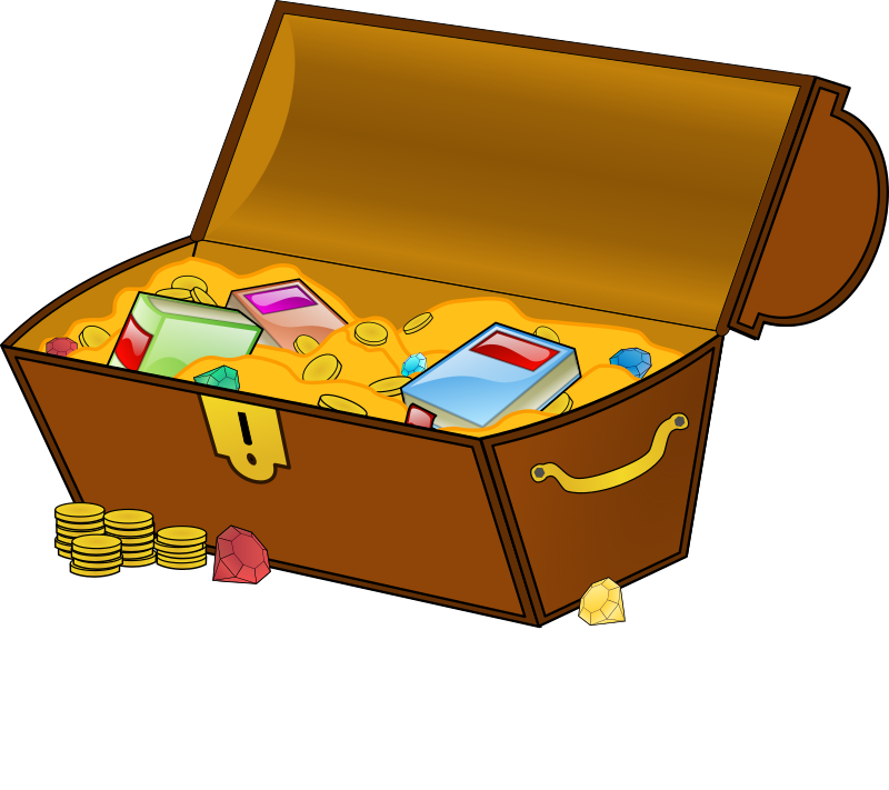 A open and filled treasure chest.