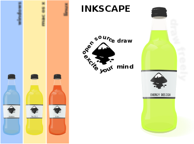 Set of bottles with inkscape logo.