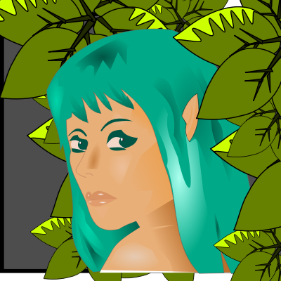 An elf looking out from the leaves