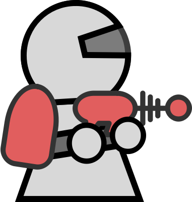 A character holding a ray gun with heavy black lines.