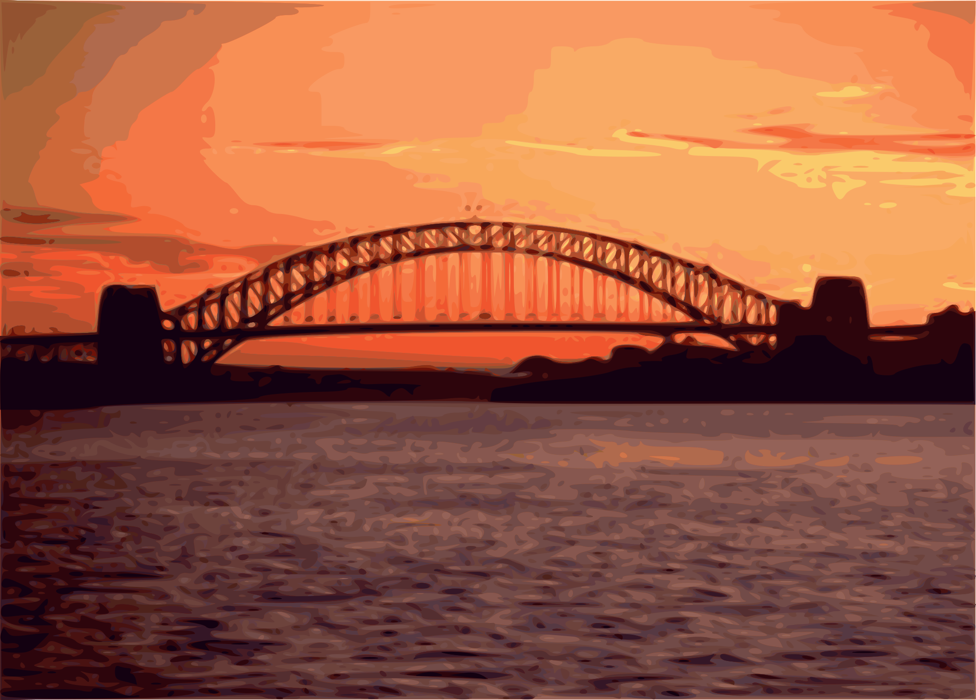A vectorized bridge at sunset