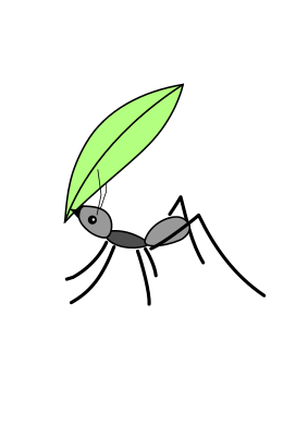 An ant holding a leaf.