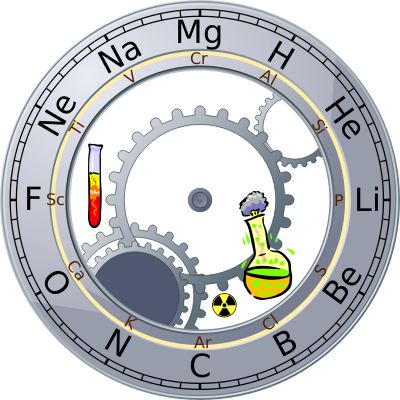 A periodic table clock based on a roman style clock by Mikael Ganehag Brorsson.