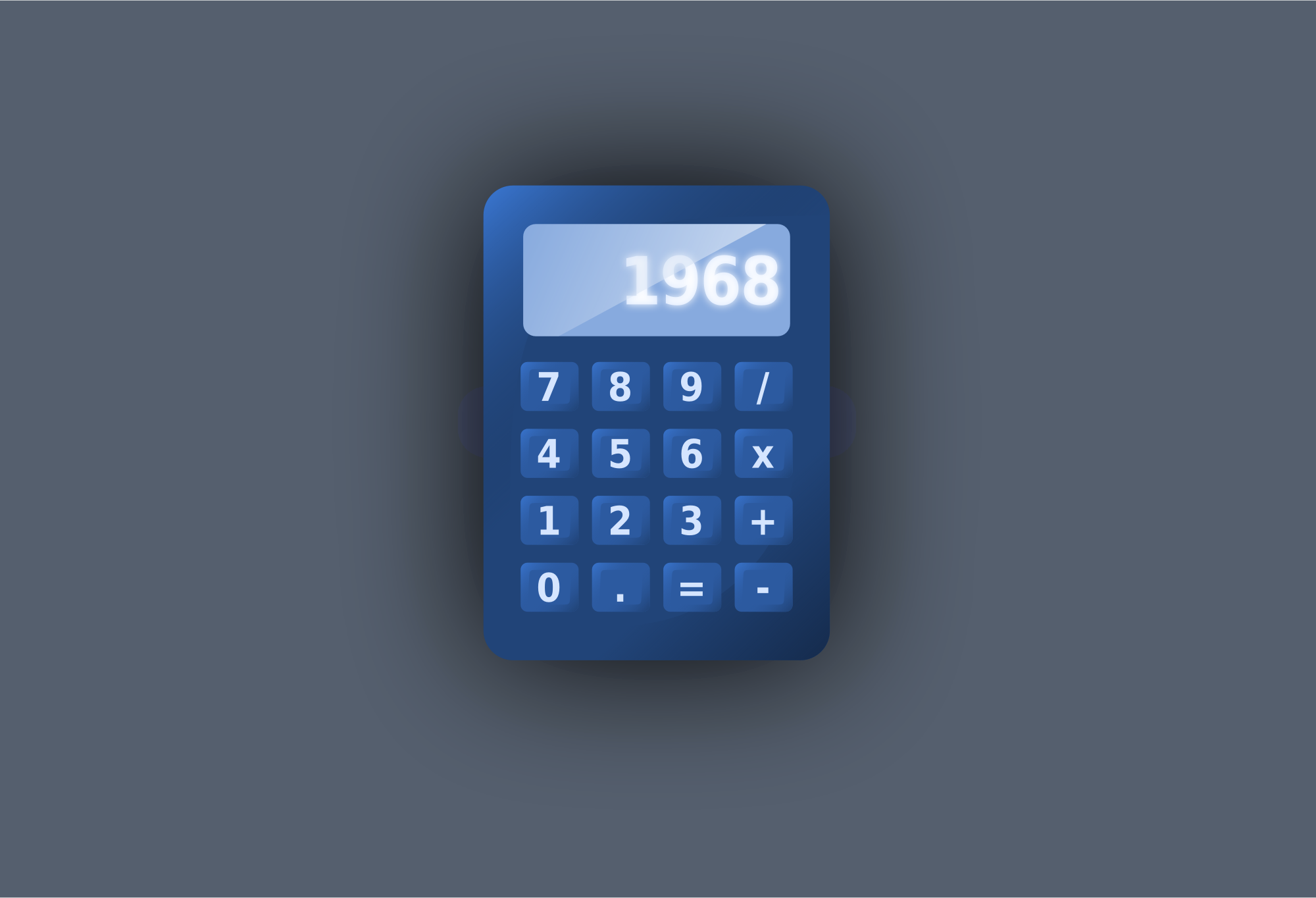 A blue calculator as if on a desktop or as a widget.