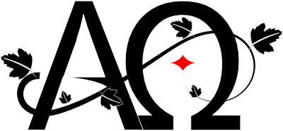 A vine circling the letters "Alpha" and "Omega"
