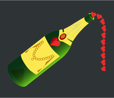 Champagne bottle pouring hearts for celebrations