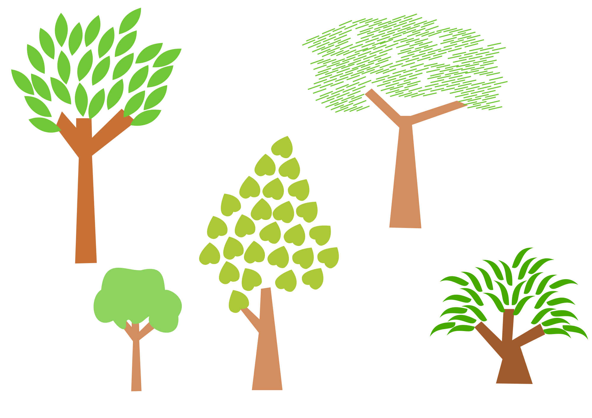 Cinq arbres diferents. Fiver different trees.