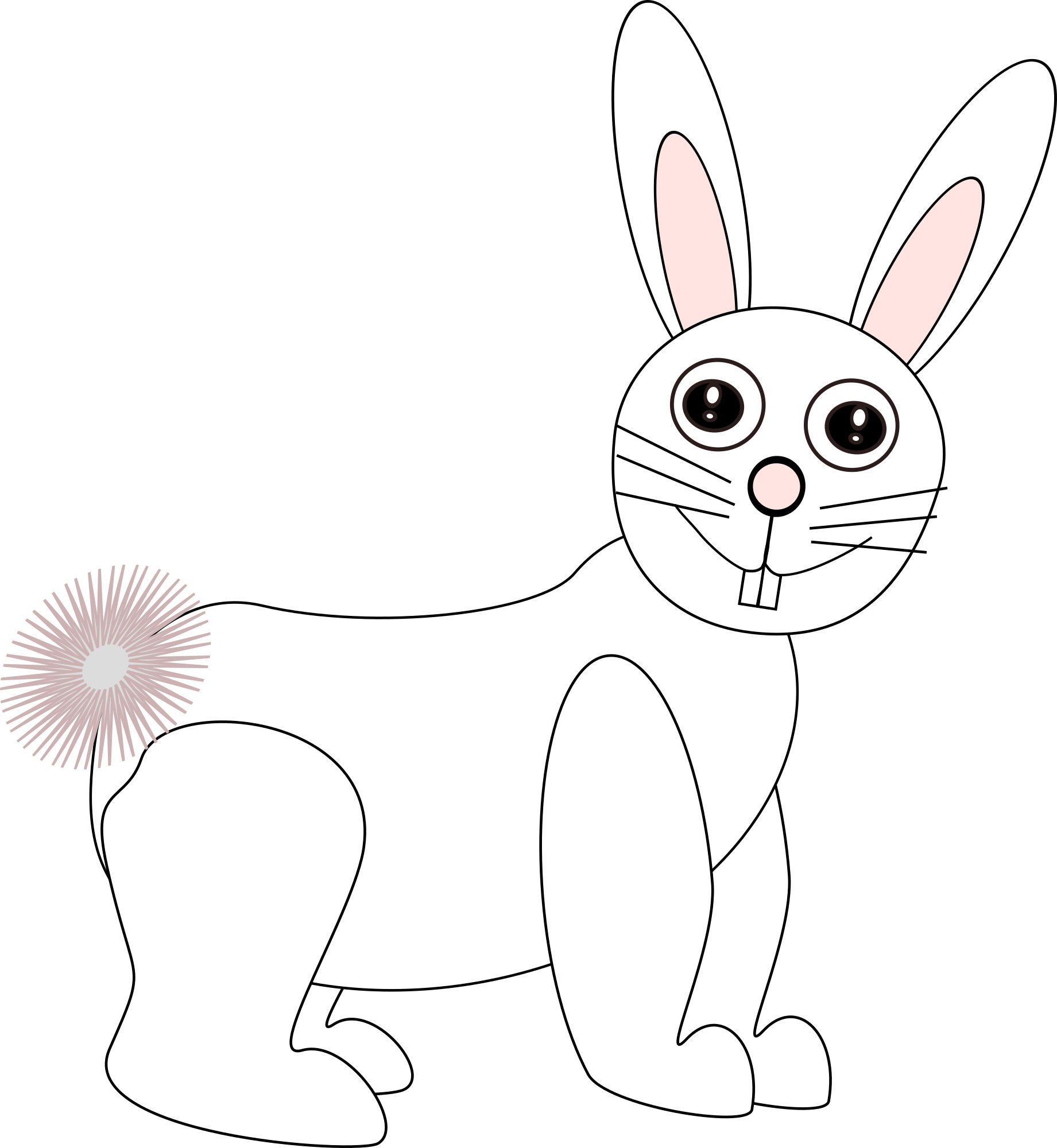 A rabbit with a tail from the side.