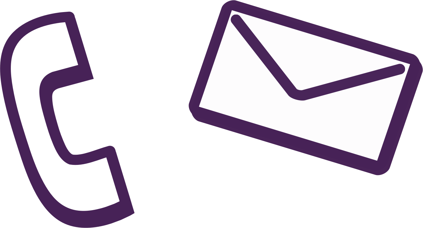 Clean flat contact graphic showing stylised '70s era telephone reciever and a simple stylised envelope overlapping an @ symbol.