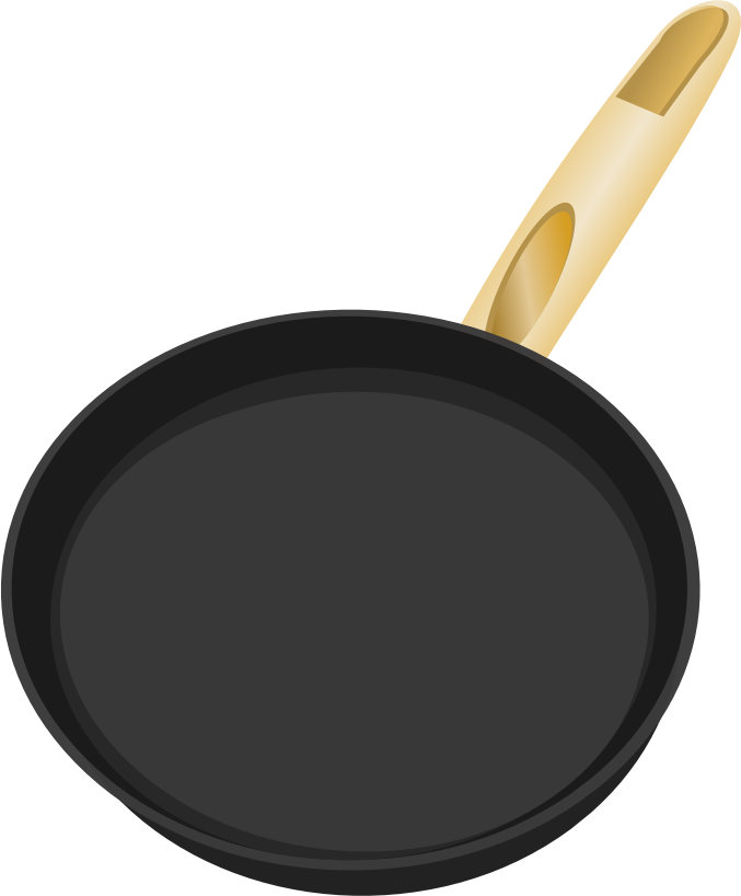 A frying pan with a wooden handle.