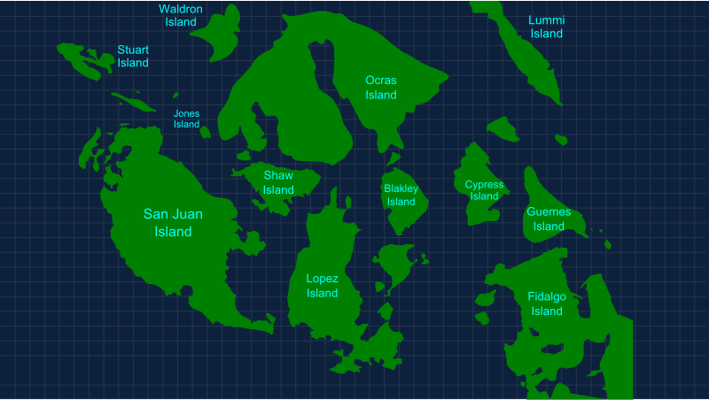 This is a drawing of the San Juan Islands in Washington State near Seattle.