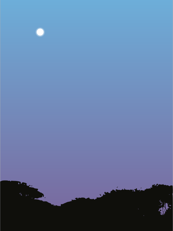 Sunset with moon and trees.