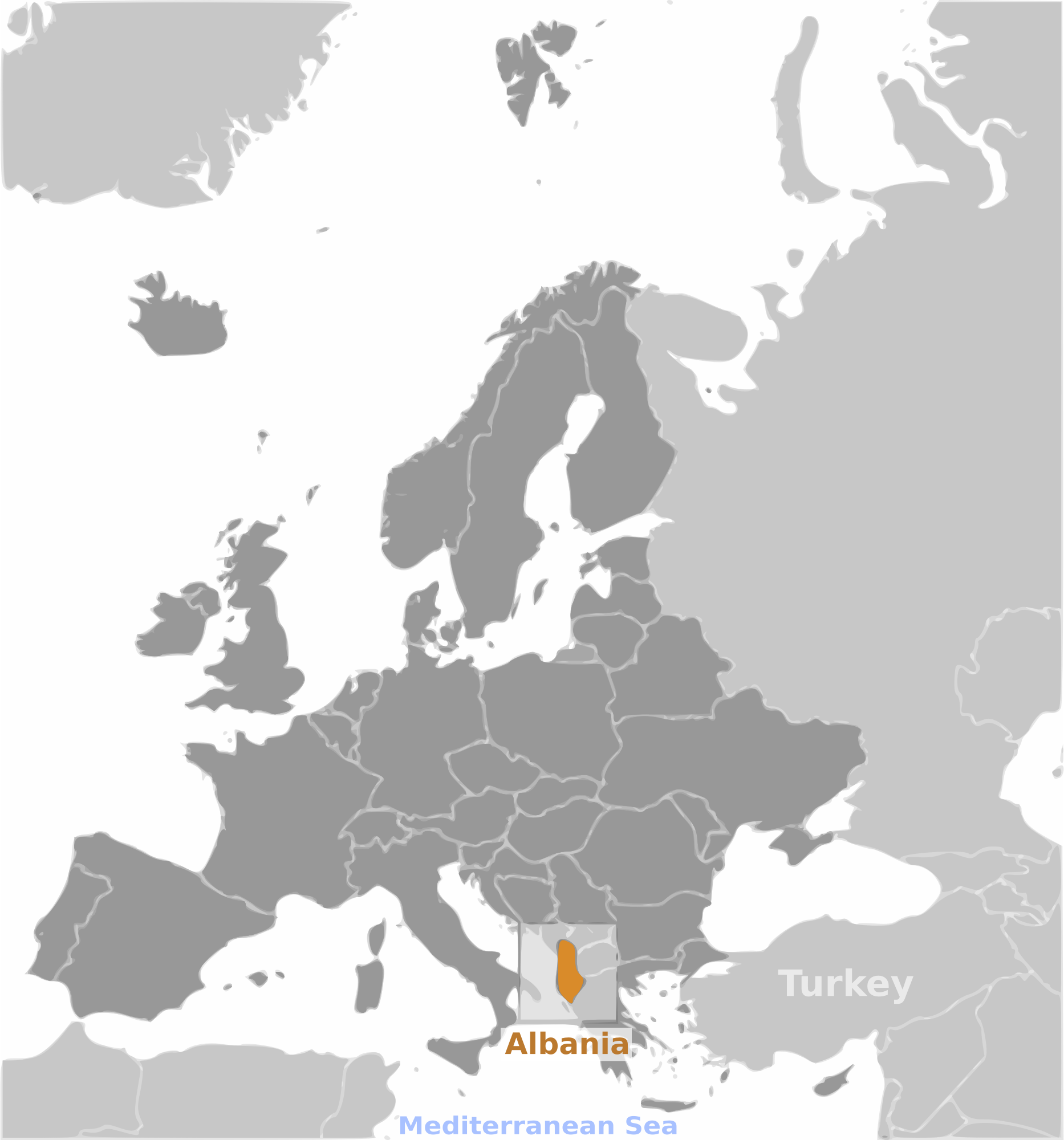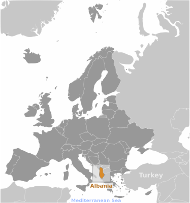 Country map of Albania location with labels
