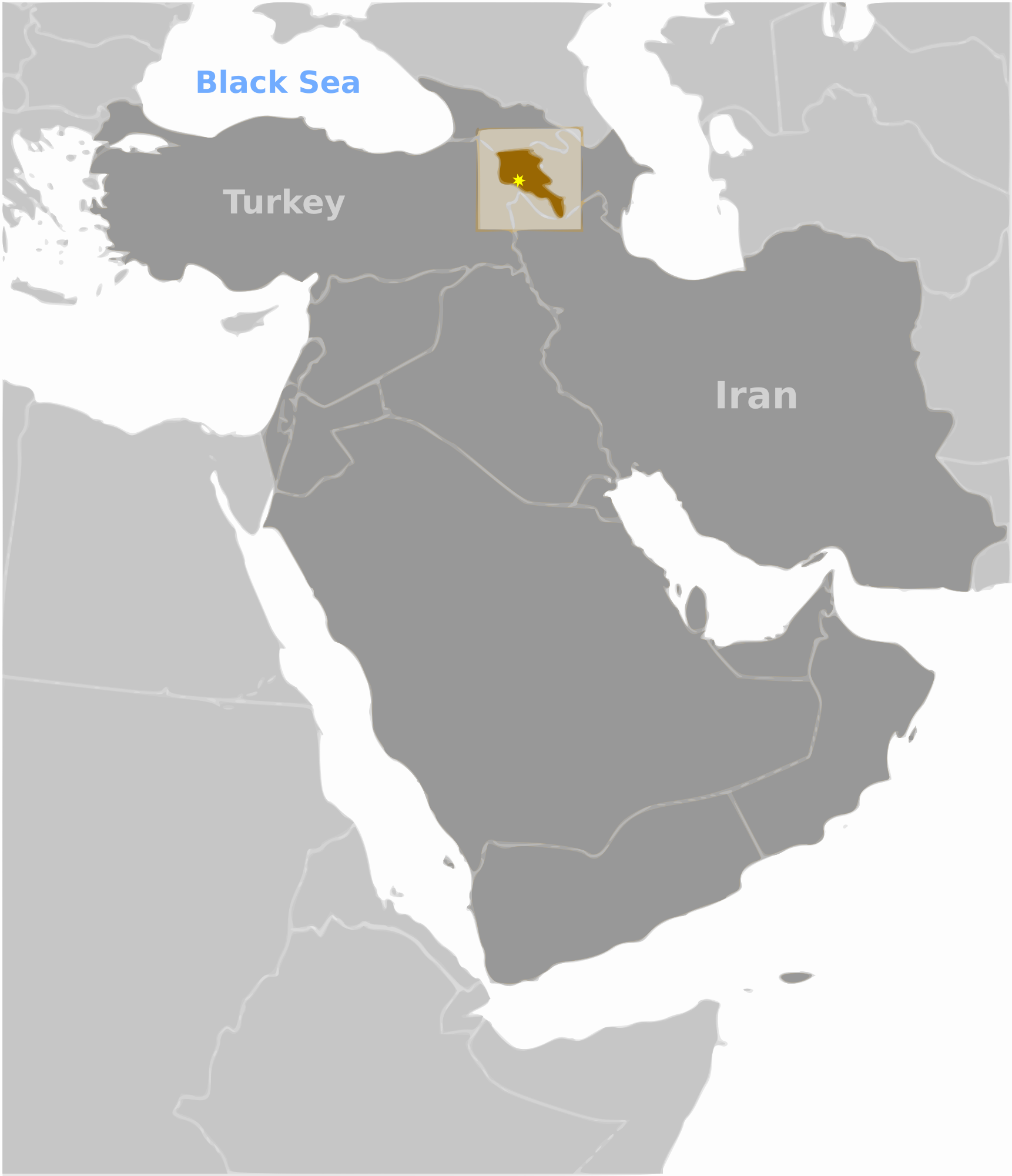Country map of Armenia location with labels