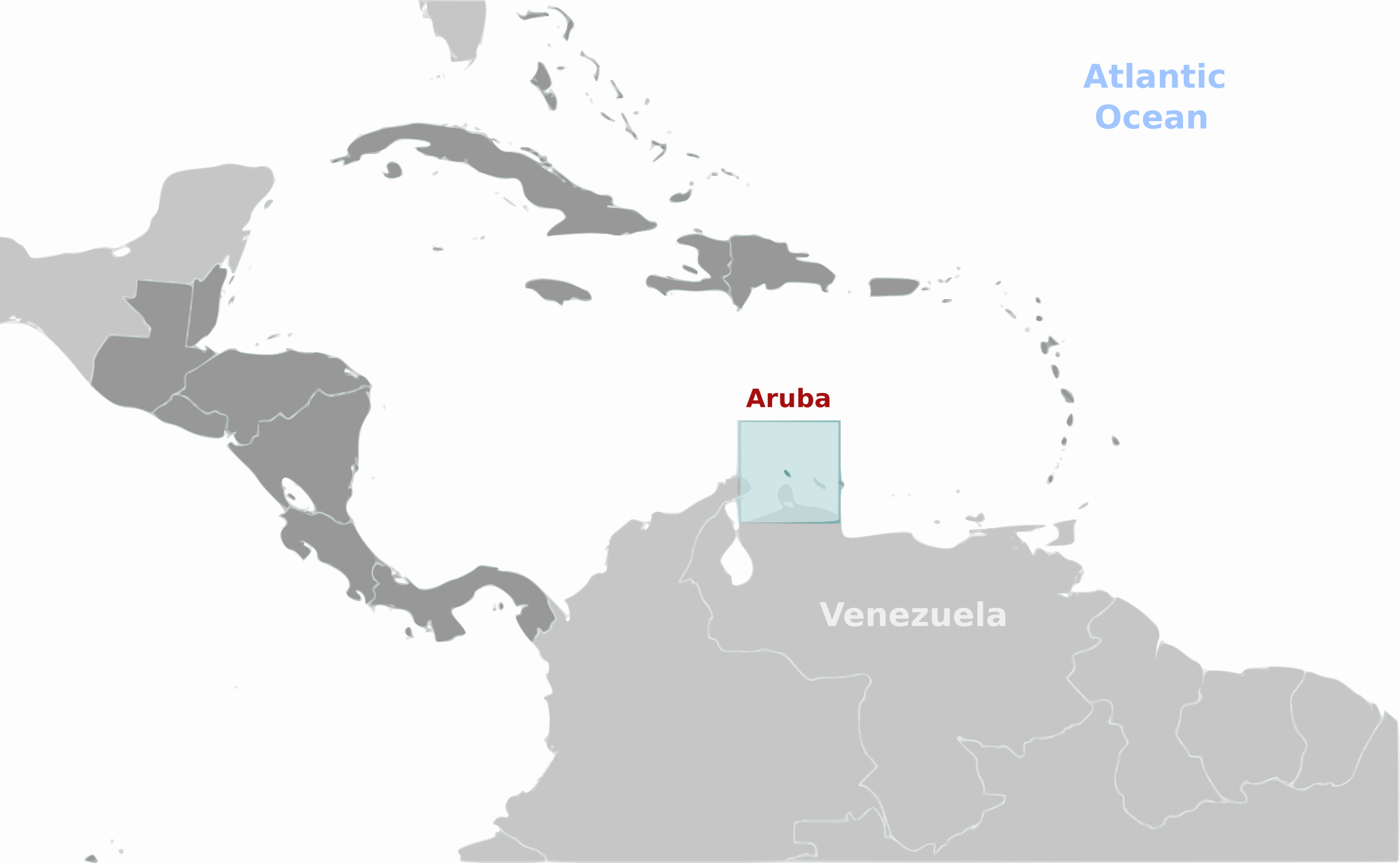 Country map of Aruba location with labels