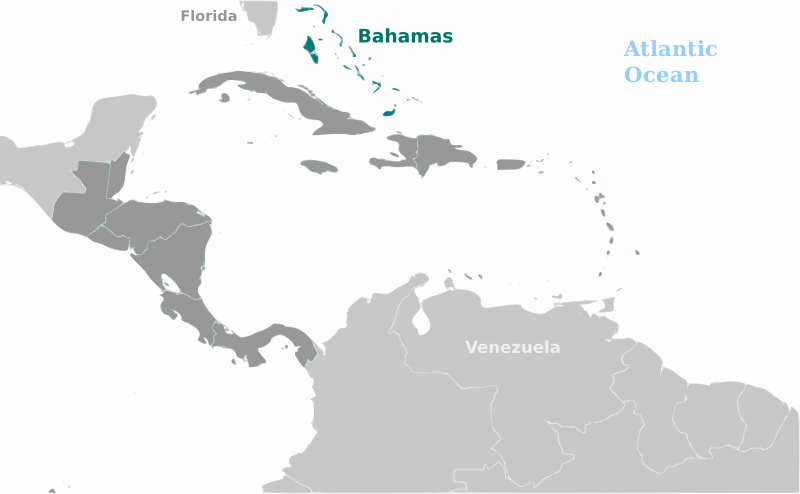 Map of Bahamas location with labels