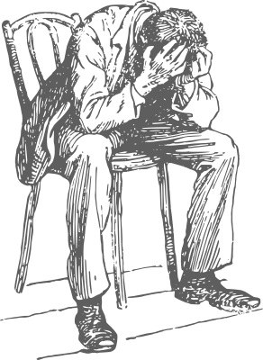 A man sitting on a chair burying his face in his hands. He is desperate.