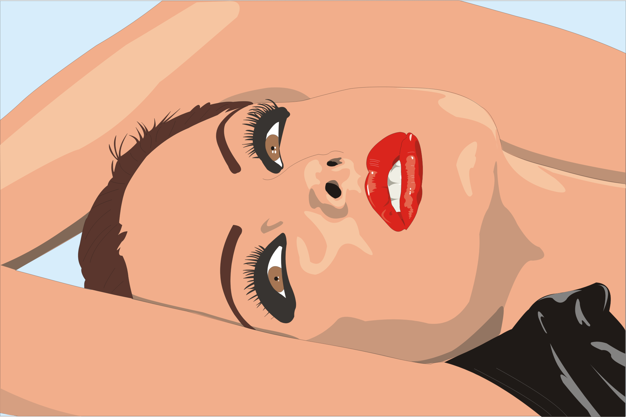 Lying woman with makeup, close up.