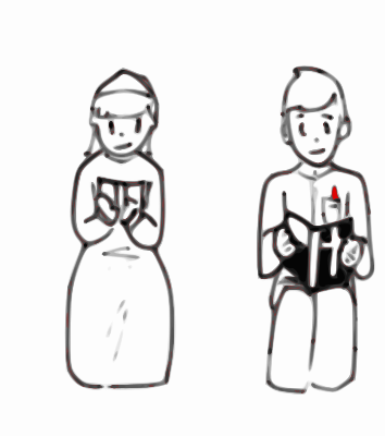 Boy and girl sit reading. Made in GNU/Linux using Inkscape, MyPaint and Pinta