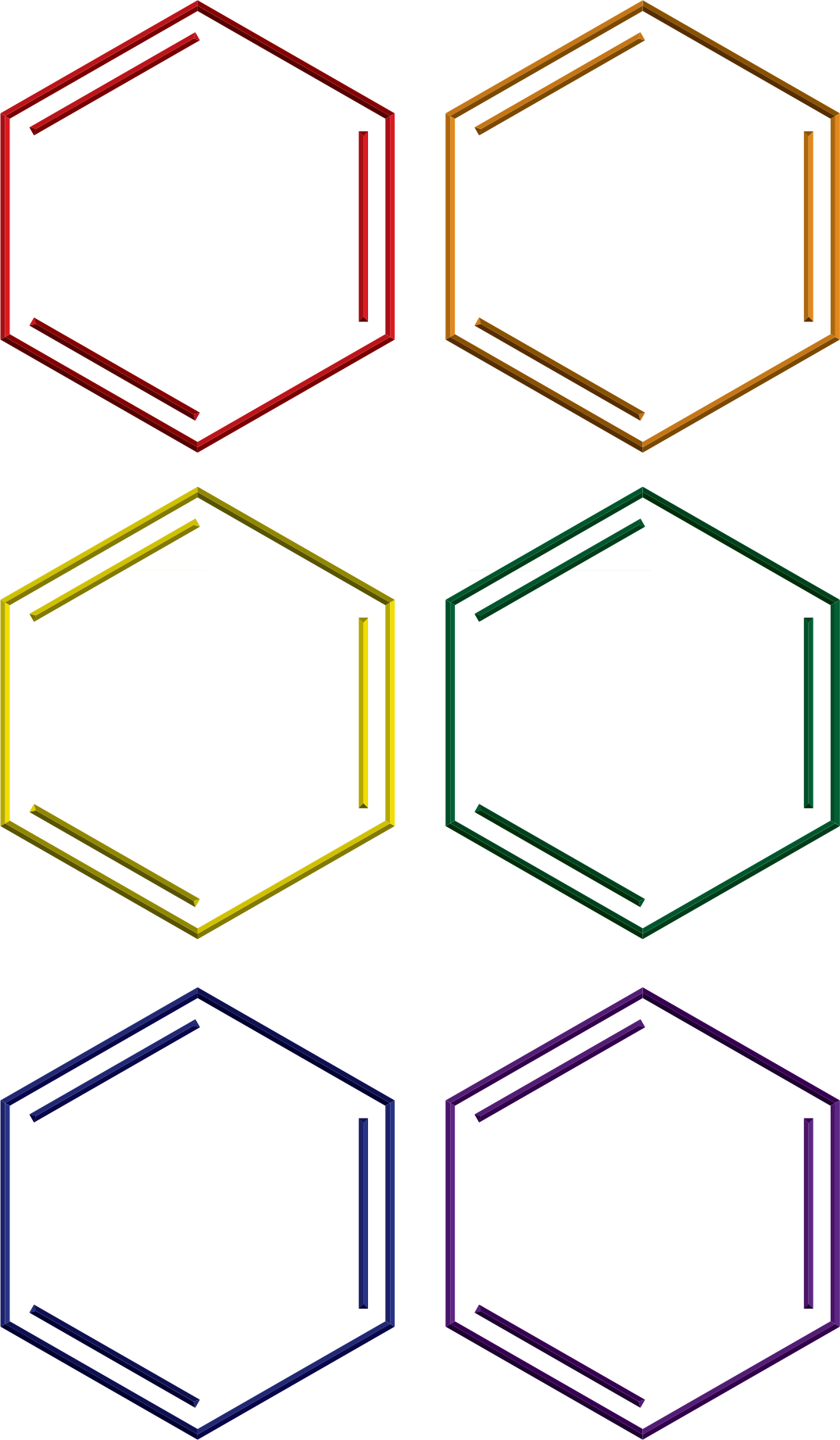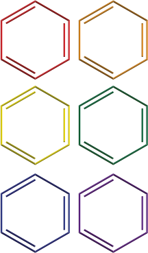 Benzene rings in rainbow colors