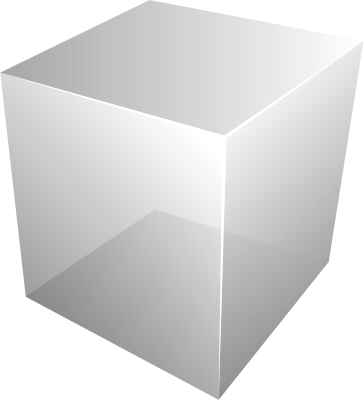 Cube gris-transparent vue de côté.
