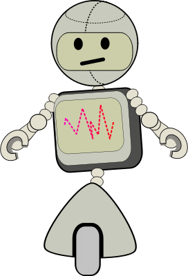 A cartoon robot that rides on one wheel.
