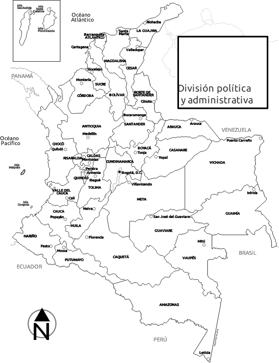 - Colombia capitales departamentos esquema map mapa outline political division división política