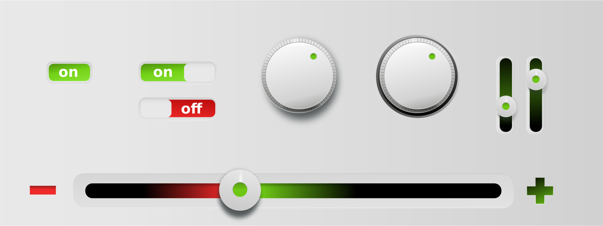 metallic controls/knobs with red and green indicator lights