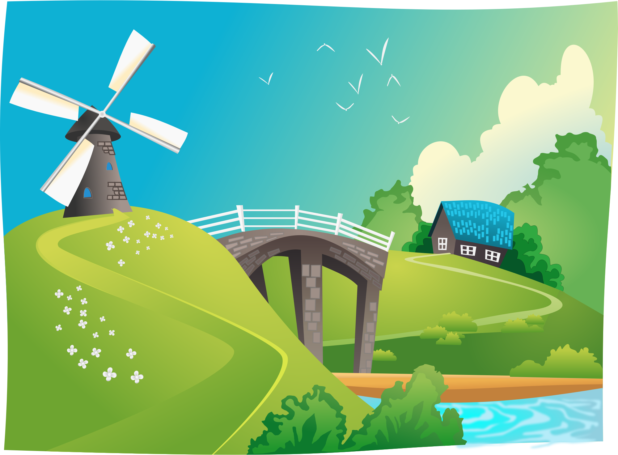 windmill, scenic landscape