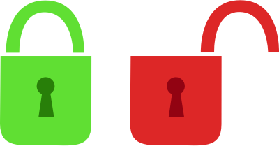 Set of 2 locks, one opened and one closed.