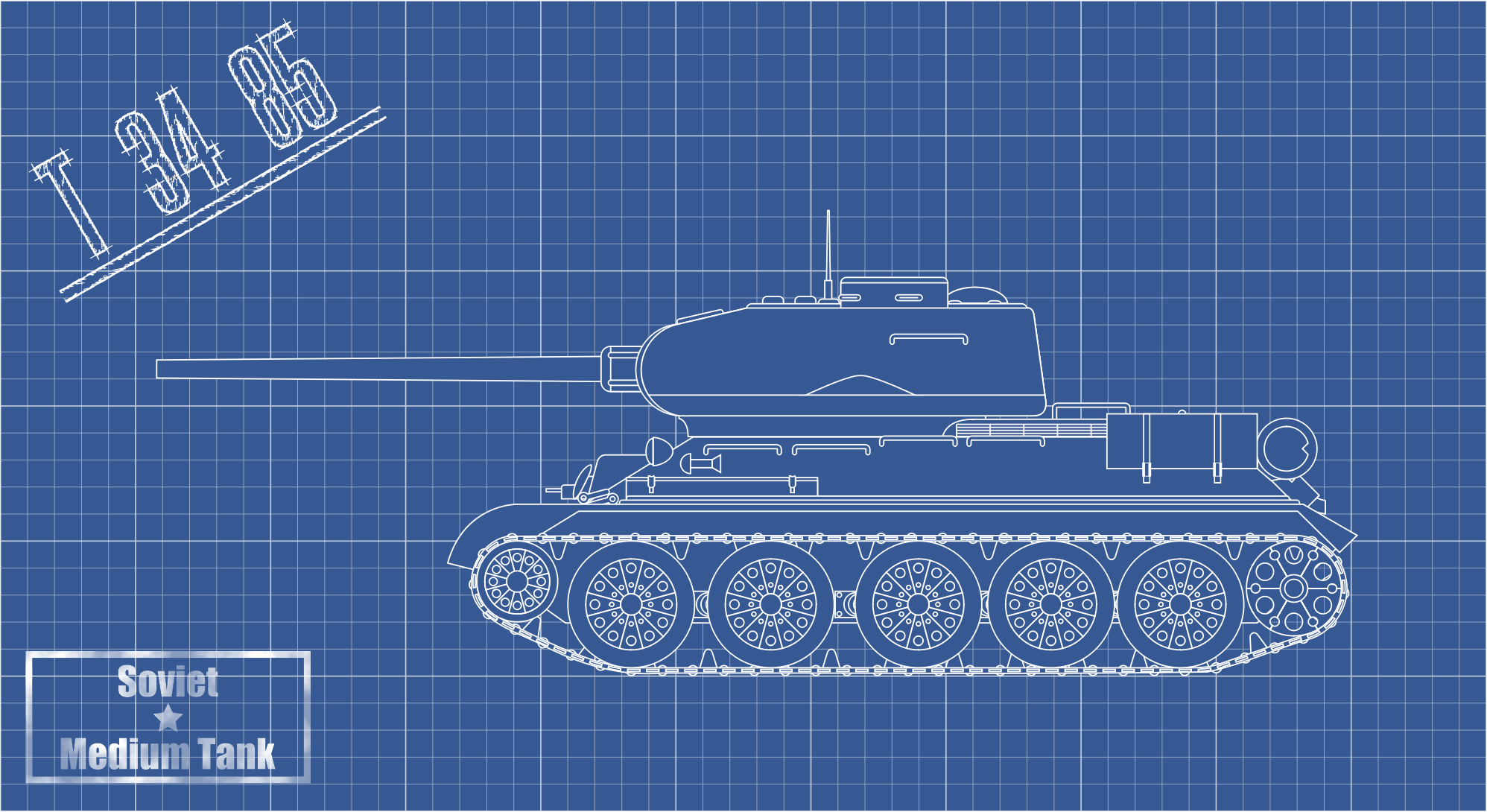 Soviet medium tank T-34-85 from the WW2 in blueprint