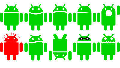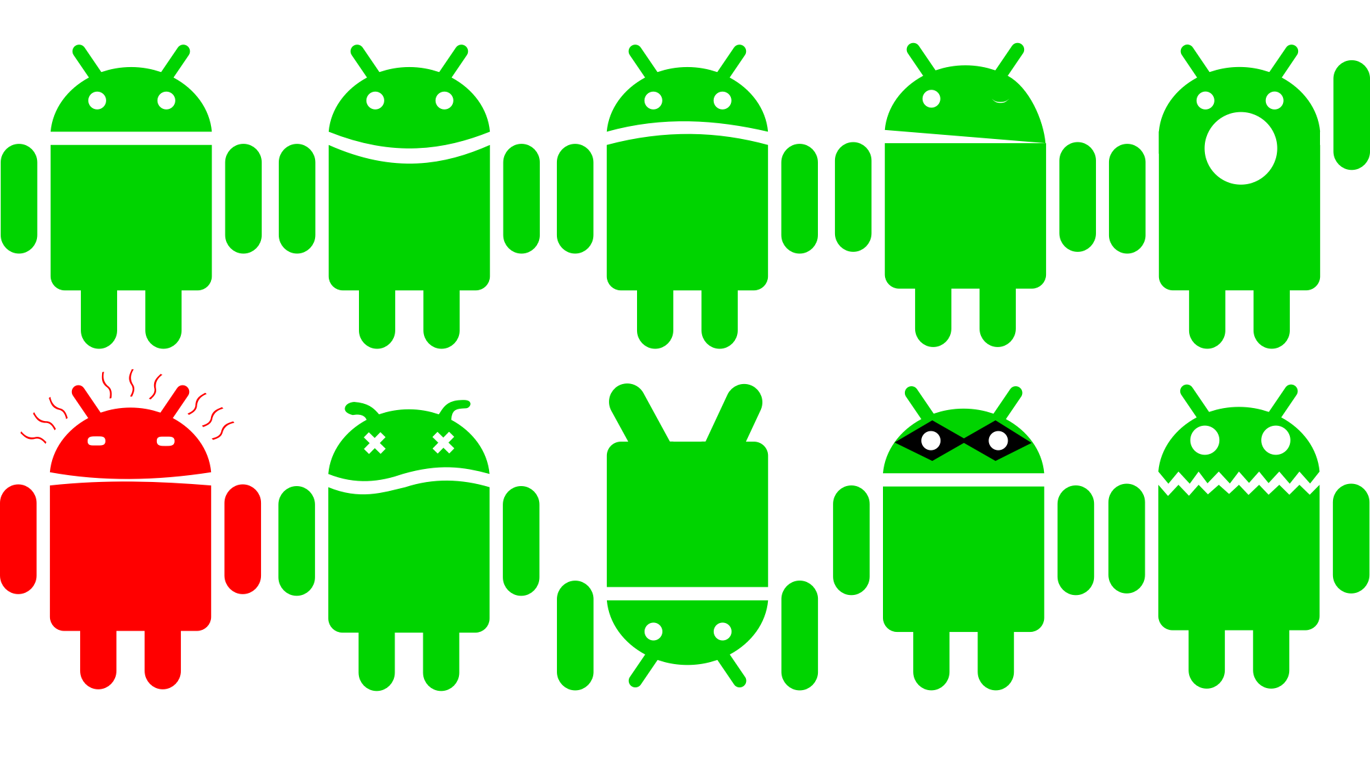 Different stances of the android logo