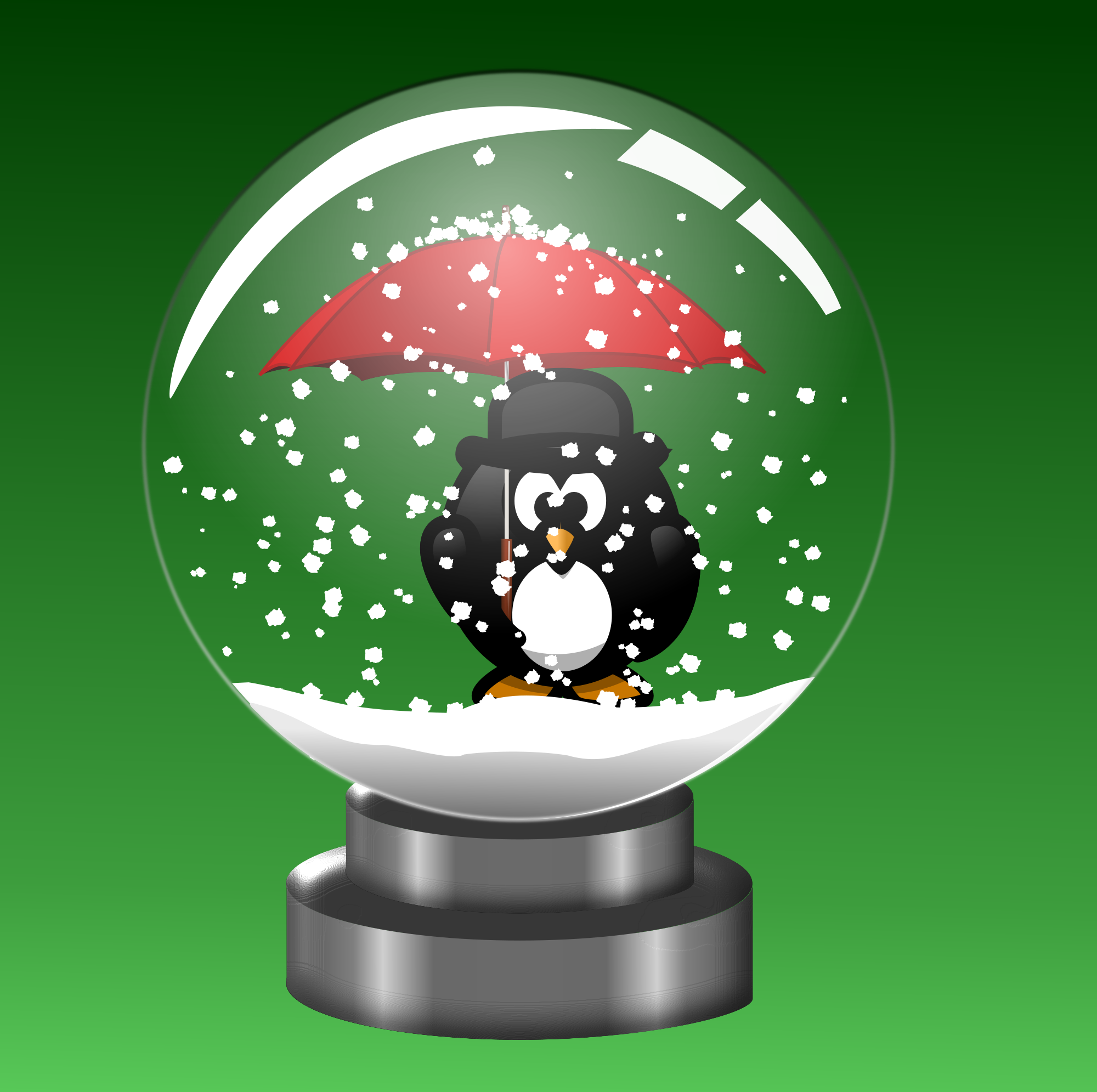 A penguin attempting to stay out of the falling snow with an umbrella. Unfortunately for him he'll never leave the snow globe without a quick edit in Inkscape. This is a remix (Thanks Moini) partially...and thanks to Moini for pointing out to me that this is not a Panda in my first upload.. :)