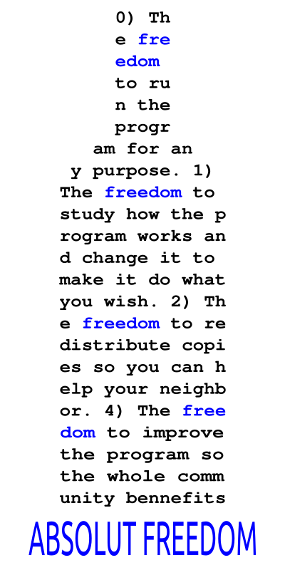 A freedom statement written a bottle-shape.