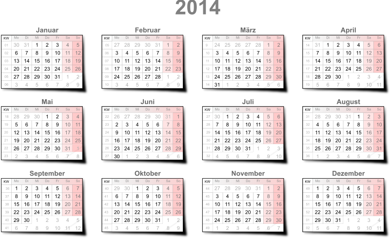 Kalender auf Basis vom Inkscape-Makro, zusätzlich mit Kalender-Wochen.